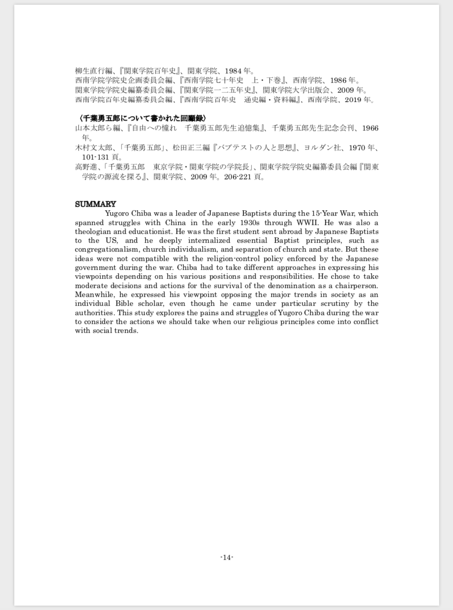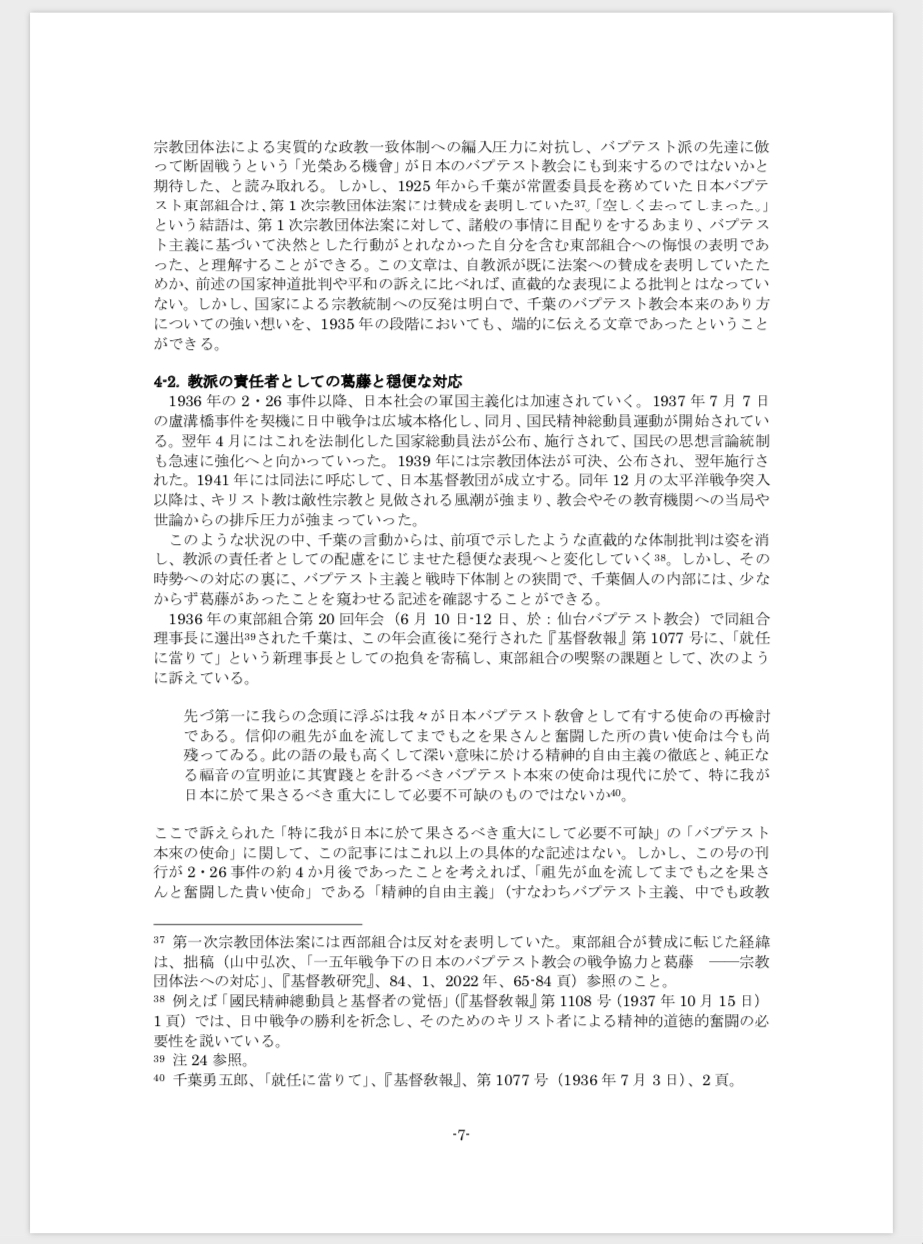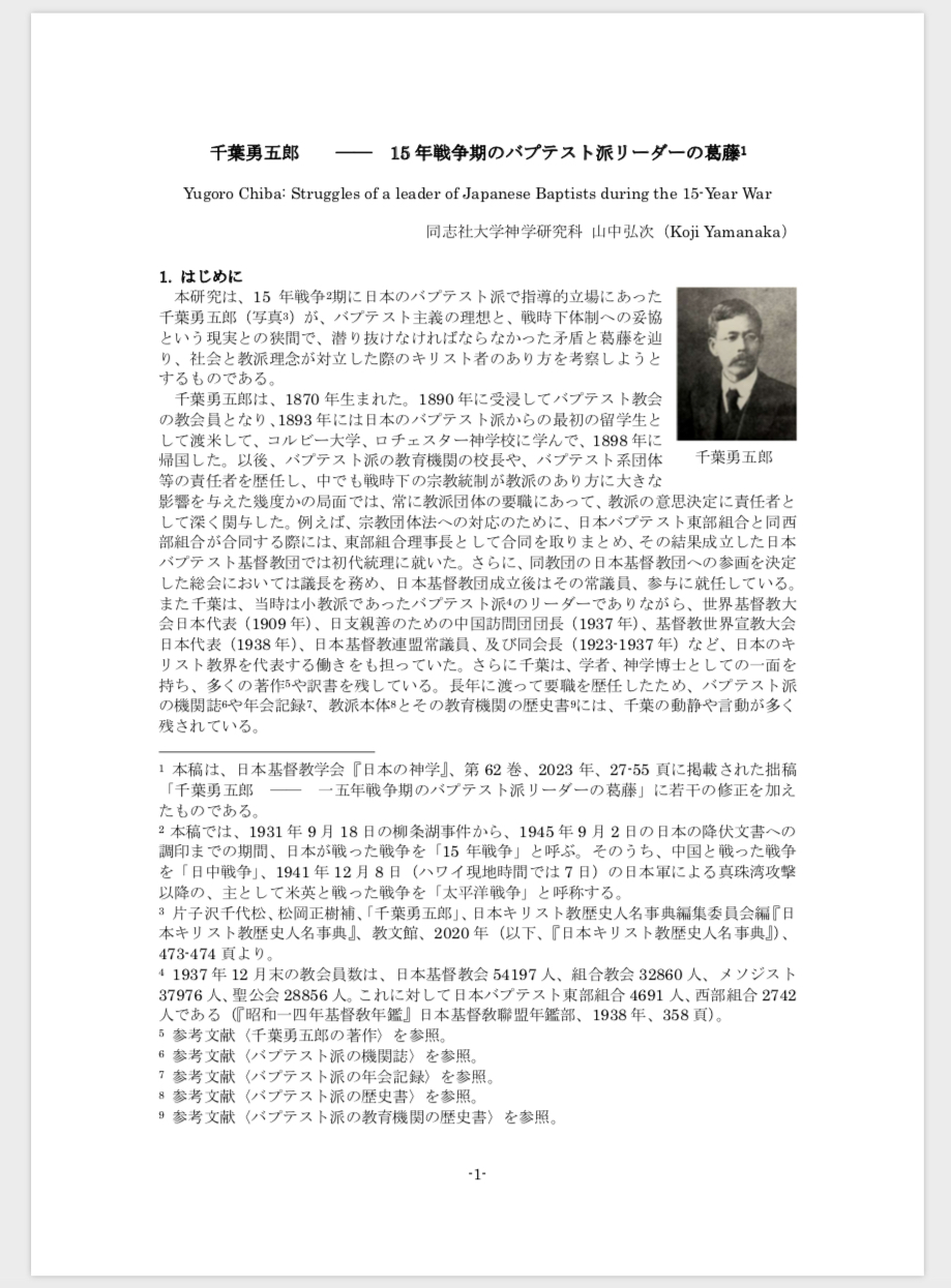 「千葉勇五郎--15年戦争期のバプテスト派リーダーの葛藤」